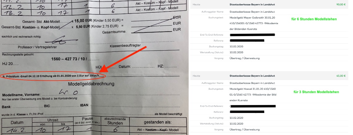 ... und nicht zu fassen! Die AdBK (Akademie der Bildenden Künste) München hat den Modellstundenlohn zu Jahresbeginn erhöht.